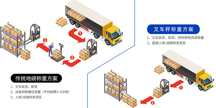 重量測量在商品和原材料的供應中非常重要。在物流園區(qū)、生產車間、倉儲場所等區(qū)域,常常能看到叉車忙碌的身影。在叉車搬運、堆垛貨物過程中,貨物的重量具有很重要的意義。通常叉車會將貨物搬運到地磅或臺秤上,進行計量稱重后,再搬運至其他位置,這樣的稱重方式雖精確,卻效率不高。